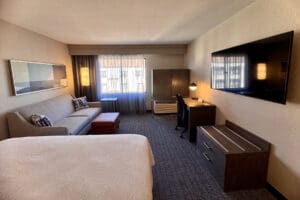 This pet-friendly hotel also includes an exercise room, ADA-approved facilities, guest laundry room, complimentary shuttle service to/from the Waco Airport, TV/cable, all non-smoking rooms and suites, in-room complimentary coffee, irons/ironing boards, and afternoon/evening cocktails available for purchase. Their excellent service matched with their amenities will make you feel at home at the Courtyard Waco hotel.